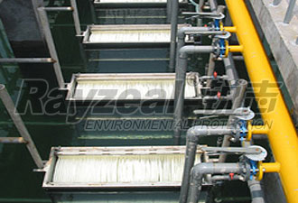 MBR膜生物反應(yīng)器(membrane bioreactor),是一種將高效膜分離技術(shù)與傳統(tǒng)活性污泥法相結(jié)合的新型高效污水處理工藝,它用具有獨(dú)特結(jié)構(gòu)的MBR平片膜組件置于曝氣池中,經(jīng)過好氧曝氣和生物處理后的水,由泵通過濾膜過濾后抽出。MBR污水處理與傳統(tǒng)污水處理方法具有很大區(qū)別,通過膜分離裝置代替?zhèn)鹘y(tǒng)工藝中的二沉池和三級處理工藝。從而得到優(yōu)質(zhì)的出水,解決了傳統(tǒng)污水處理方法的出水水質(zhì)達(dá)不到中水回用要求的問題。MBR膜對城市生活廢水處理后的水可直接作為市政用水或進(jìn)一步處理作各種工業(yè)用水。